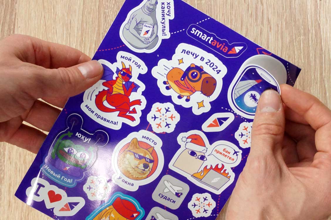 Наборы небольших наклеек из пленки с контурной резкой на форматах А6, А5, А4 и др.
