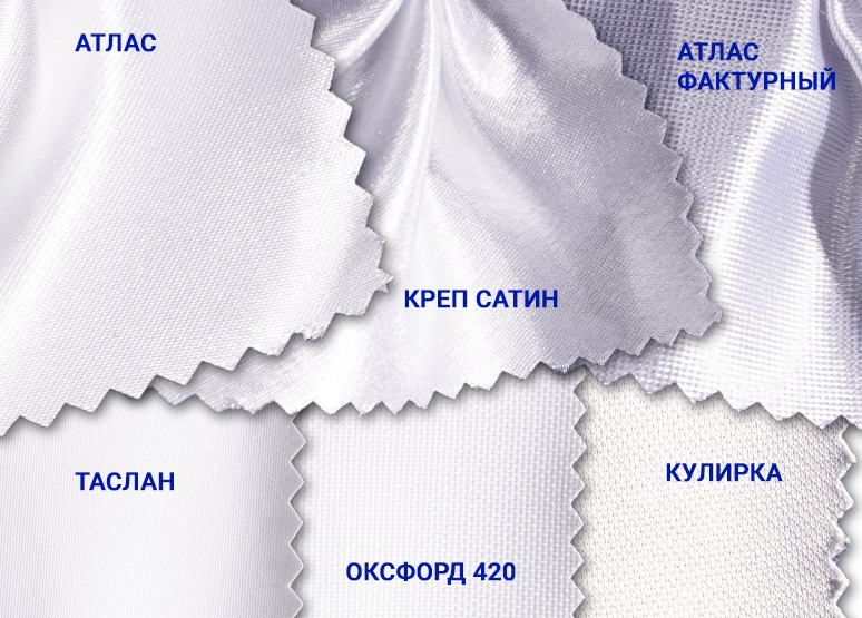 Здесь представлены все виды тканей, на которых можно заказать полноцветную печать в ТСН-принт
