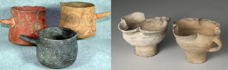 Древняя Месопотамия, известная нам из школьных учебников как Междуречье, шла свои путем. Кстати, есть ученые мнения, что пиво было изобретено именно там. Во всяком случае из расшифрованных клинописных аккадских текстов мы узнаем, что в те времена было известно порядка срока его сортов. А, что касается кружек, то у народишка попроще были вот такие керамические чашки.