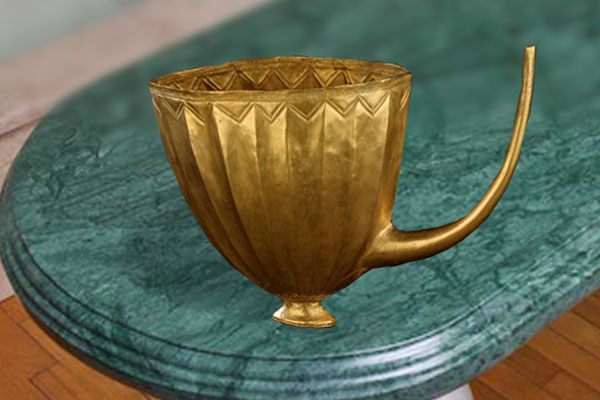 Античность. Знатные люди античных времен тоже пивали из золотых чашек, вот таких, как эта: найденная при раскопках той самой несчастной Помпеи, погребенной извержением Визувия.