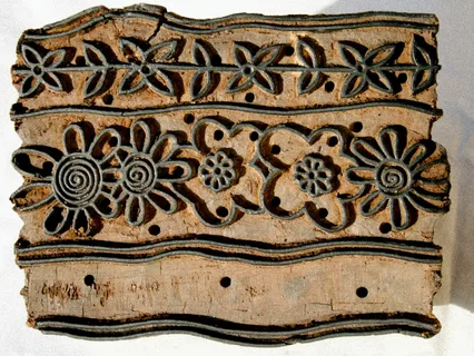 Первый этап у обоих технологий полотняной печати заключался в следующем. На плоскости деревянной заготовки вырезался рельефный рисунок с изображением, как правило, растительного орнамента. Получался своего рода штамп, содержащий часть рисунка, ныне называемый паттерном, который затем будет повторяться и составит тем самым сплошной узор. На Руси штампы эти получили название "манера". Для создания многоцветного рисунка манеры делались отдельно под каждый цвет. Для того, чтобы манера не разбухала от красителя, она пропитывалась маслом. Вот, она манера какая.